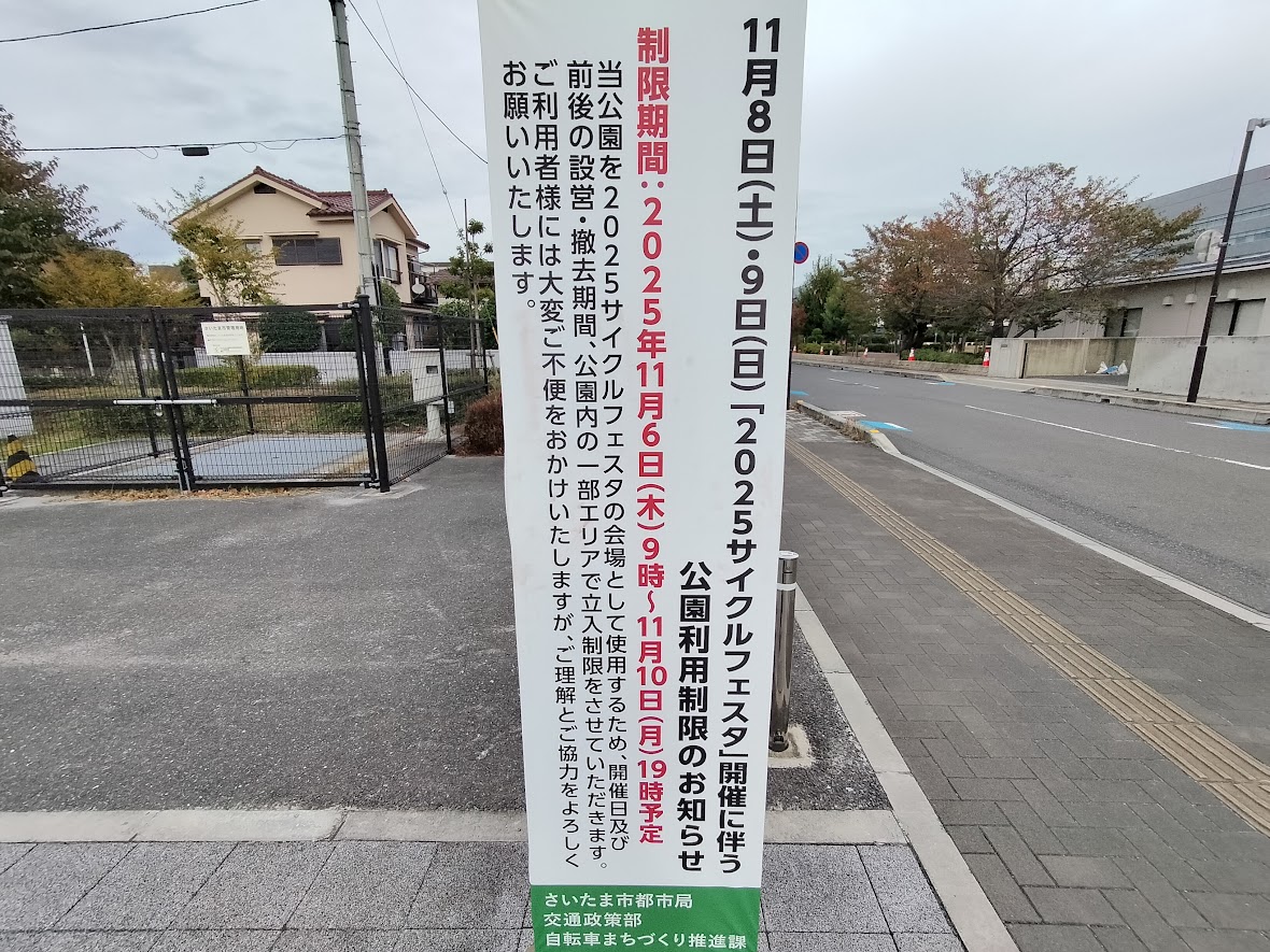 さいたま新都心公園と、さいたま新都心さくら広場の一部エリアで、イベント前後の設営・撤去のため11月6日(木)9:00~11月10日(月)19:00予定まで利用制限(立入制限)が行われています。ご利用予定の方はお気をつけください。